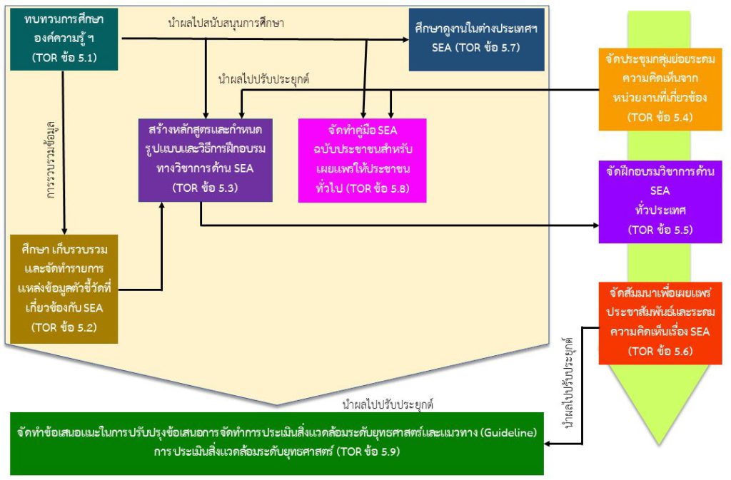 เพื่อสร้างความรู้ความเข้าใจในรายละเอียดของแนวทางการประเมินสิ่งแวดล้อมระดับยุทธศาสตร์ (SEA) ที่ถูกต้องและการขับเคลื่อนให้ SEA ถูกใช้ในการวางแผนพัฒนาอย่างเป็นรูปธรรม รวมถึงพัฒนาทักษะและความสามารถในการจัดทำการประเมินสิ่งแวดล้อมระดับยุทธศาสตร์ (SEA) ให้กับผู้ทำการศึกษาและหน่วยงานที่เกี่ยวข้อง